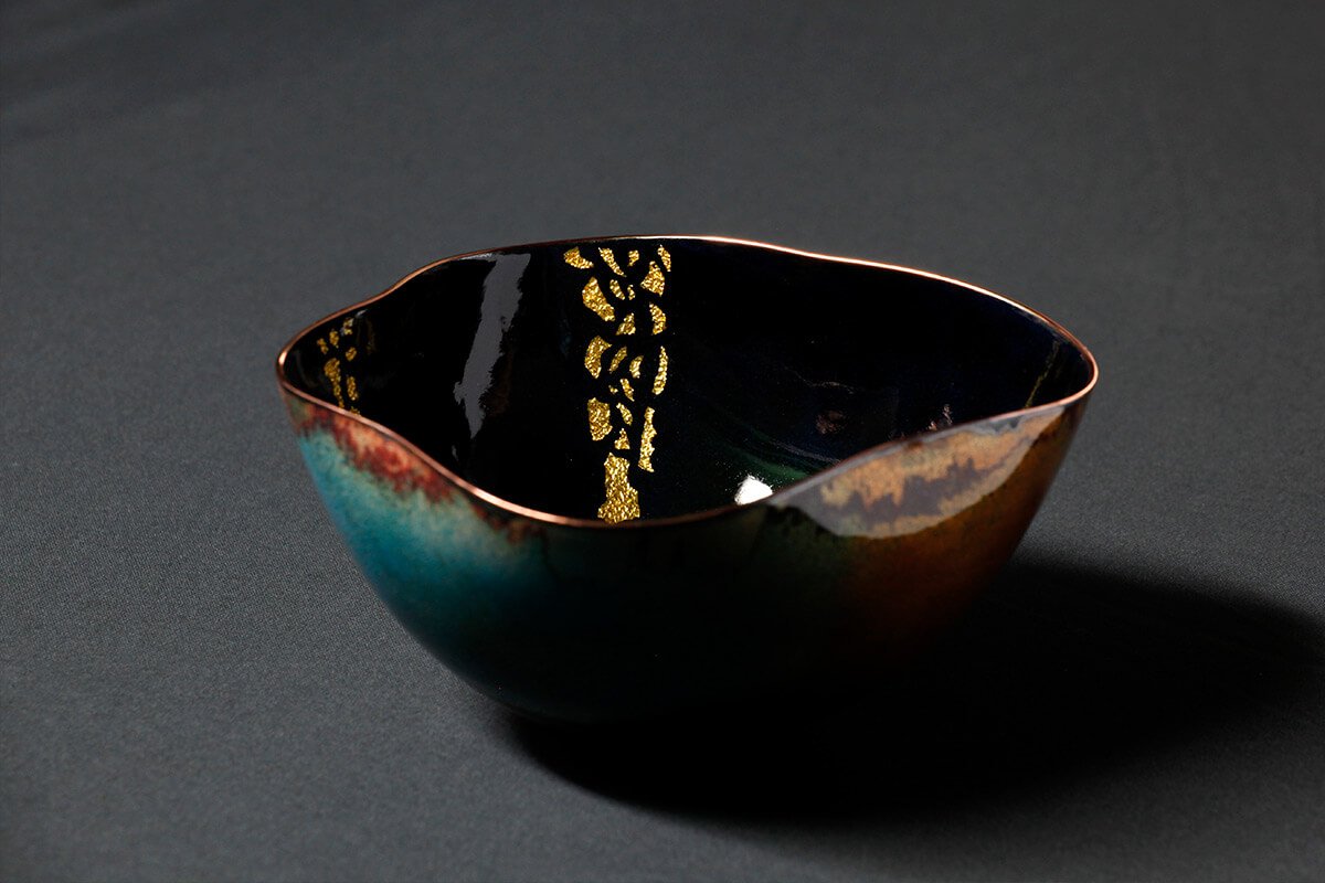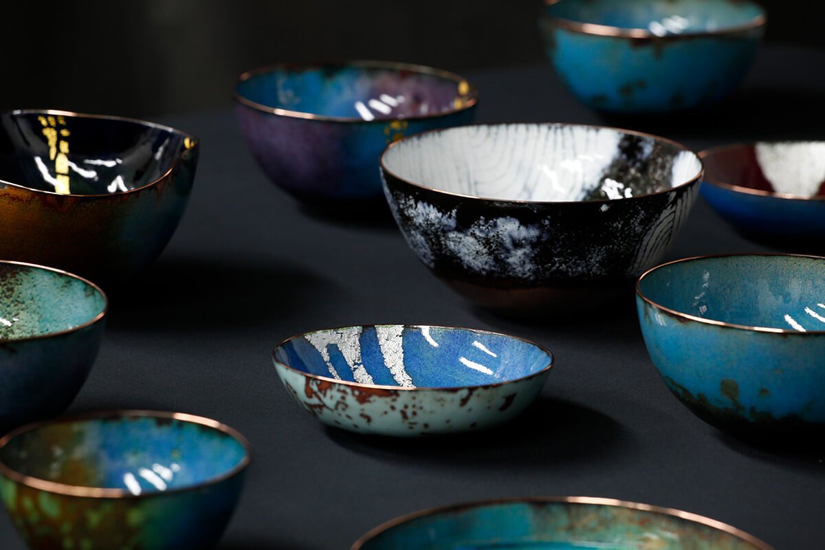 在赴美讀書時,呂燕華老師偶然機會裡接觸到金屬工藝,從此手上拿的畫筆變成了鐵鎚,寧靜的畫室響起了鏗鏘的打鐵聲。琺瑯是玻璃和金屬的結合,玻璃易碎金屬堅韌,兩種相反的特質卻不相斥。玻璃要經過高溫熱塑,才能成型;金屬要經過千錘百鍊,才能成器,兩者結合成為了琺瑯器,彷彿各自找到了美麗的重生。