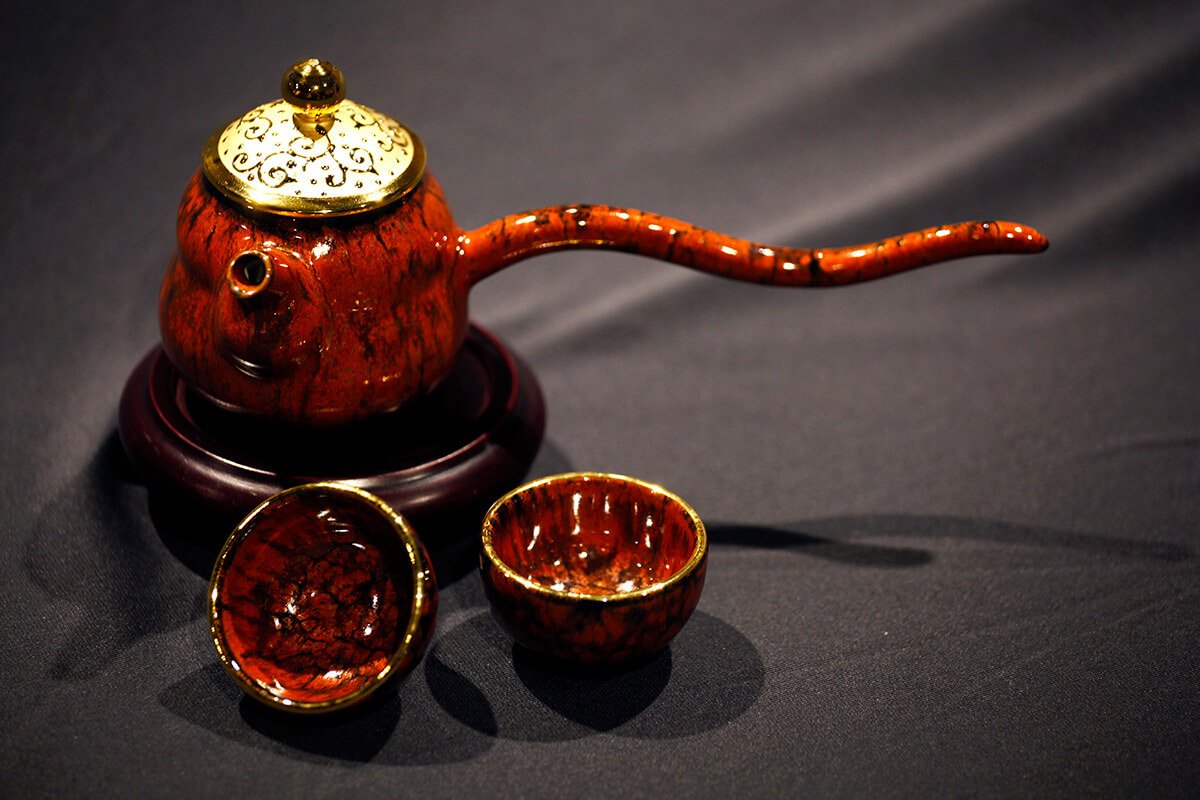 在長時間不斷的改良下,廖冠誠先生秉持的信念是要做就要做到最好,所以他努力的要做到克服天目釉經常容易流釉黏底而至失敗的困擾,要控制好燒成溫度和釉流動的情形需要掌握很精準的一個控制力,達到滿釉不滴釉的最完美的狀態。目前兒子廖家弘也投入了這作陶的行列,一家三代其樂融融。