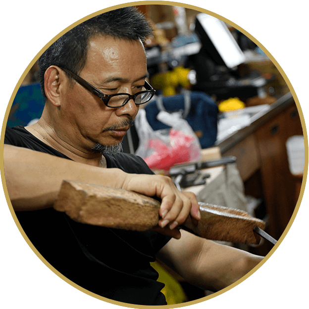 在創作的道路上一路摸索前進,幾翻轉折,到如今回歸本位,柯錦中老師認為自己的強項還是在佛像雕刻及粧佛上,本身擁有四項可登錄技術保存技藝:白身雕刻(傳統木雕)、漆線雕、彩繪安金、紙帽。所以柯老師思考在佛像的基礎上也可以嘗試做創作,因此在人物的雕刻裡融入了傳統文化的精神與寓意,如此一件件十二生肖的代表人物便英姿風發的誕生了。